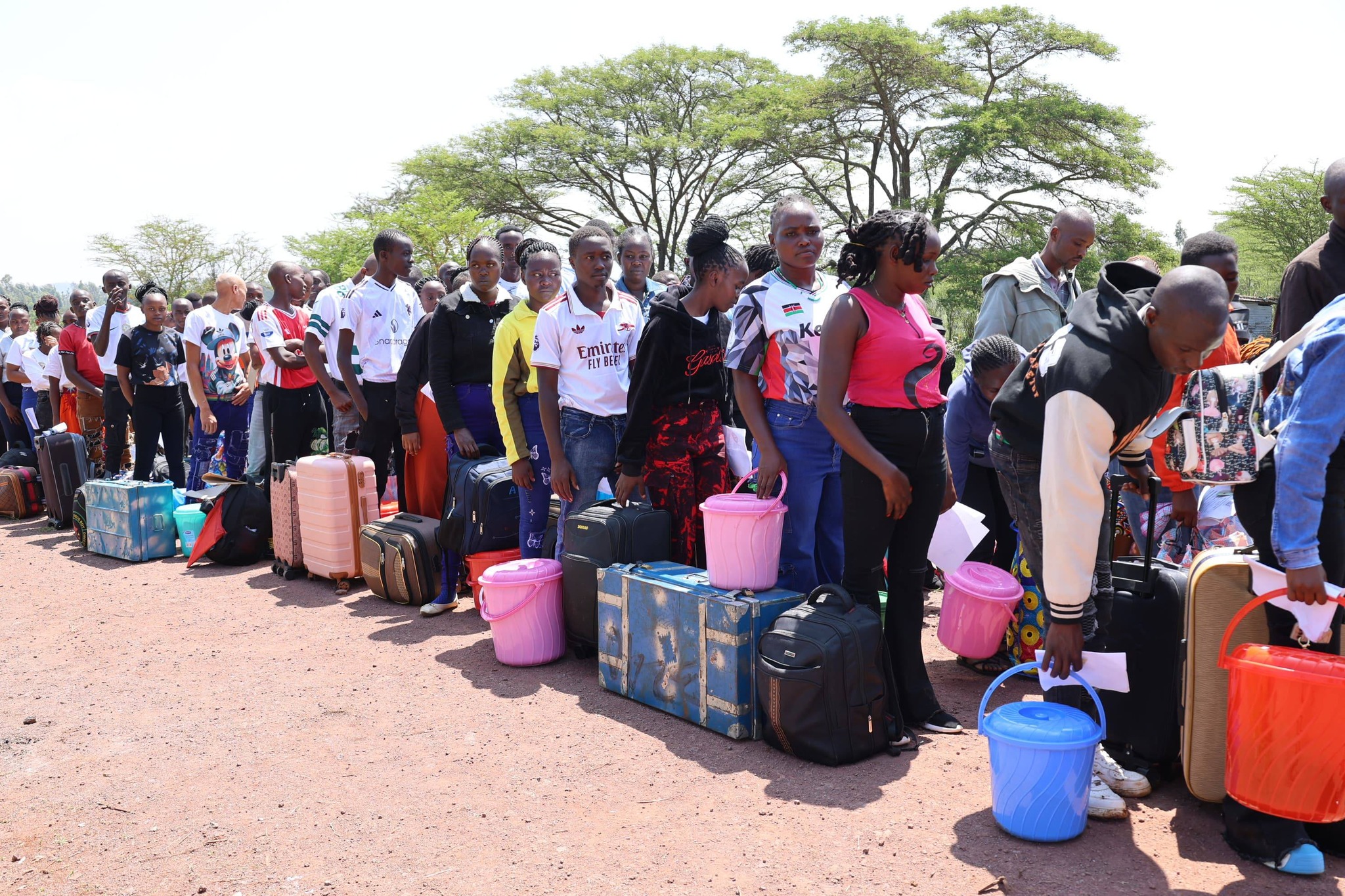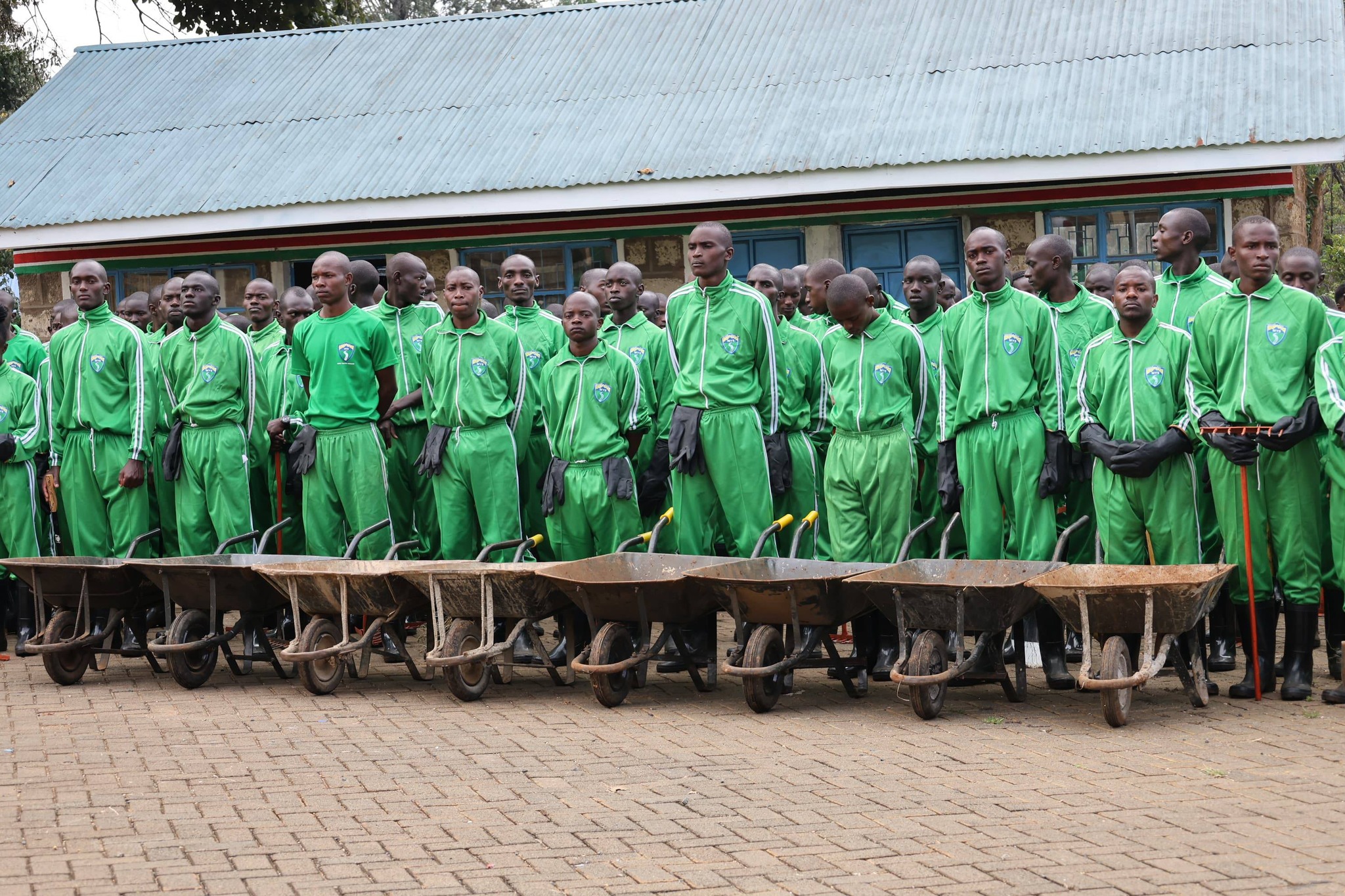 Deputy governor Linda Kiome inspect the Meru Youth Service (MYS) recruits